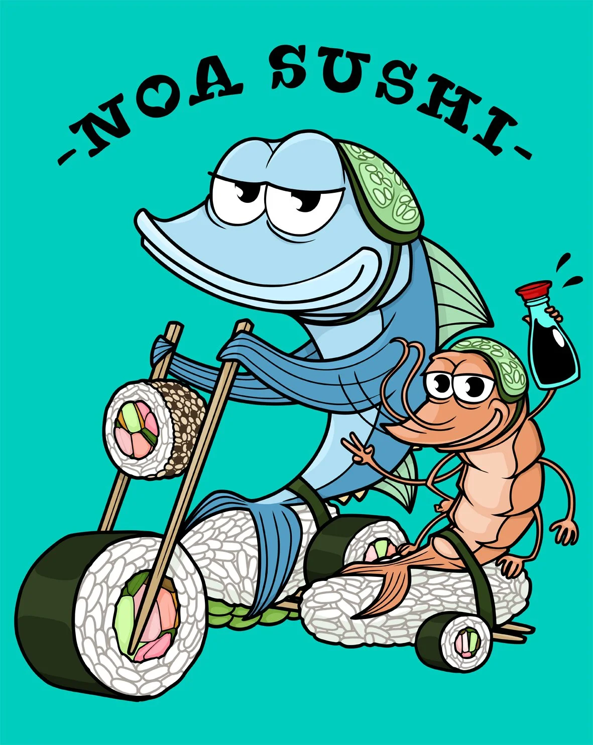 Illustration for Noa Sushi, Bristol. Commissioned through Upfest/ Deliveroo
